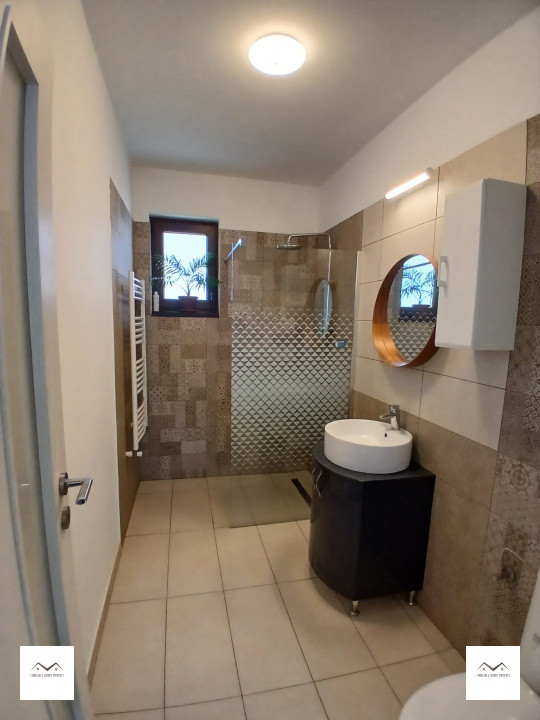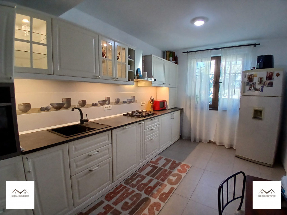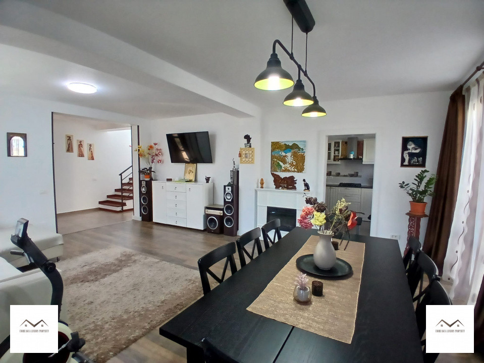 Casa are finisaje moderne, este dotata cu centrala termica cu incalzirea prin pardoseala, aere conditionate, bucataria mobilata si utilata, acoperis tabla tip Lindab.