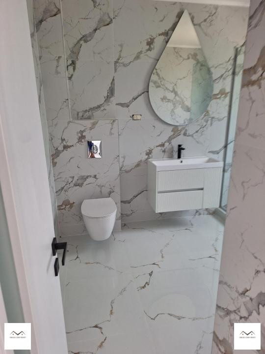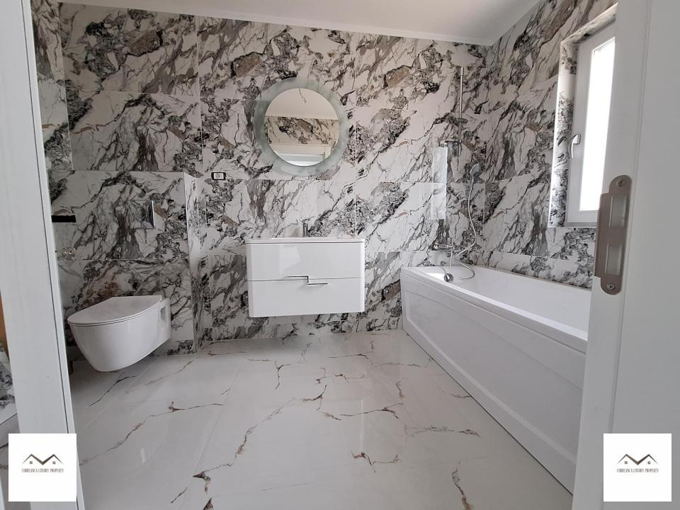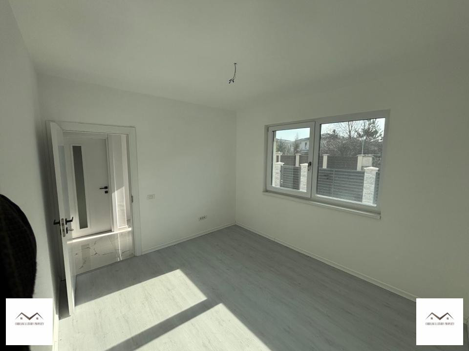 La etaj avem hol 3.5mp, dormitor matrimonial 15.5mp cu dressing 7.7mp, baie 6.6mp si balcon 4.4mp, alte doua dormitoare confortabile de 12mp si 14mp, baie pe hol 6.9mp.
